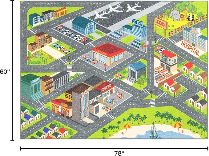 - TAKE YOUR IMAGINATION FOR A RIDE: Designed for interactive fun, this updated take on the classic play rug lets kids drive their toys through a vibrant city layout. Perfect for solo play or sharing with friends.