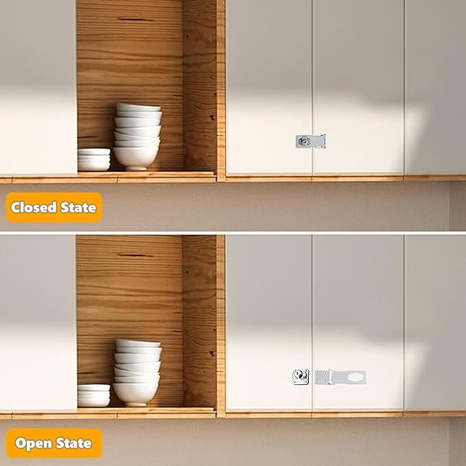 - 【Wide Applications】The locking hasp is suitable for installation in the place where you need to lock protect your house, property, and personal privacy. Such as all kinds of door, window, cabinet, drawer, furniture, pet cage, closets, cupboards, storage containers, sheds, storage bins, garage doors, tool boxes,sliding doors, wardrobes, fence,and etc.