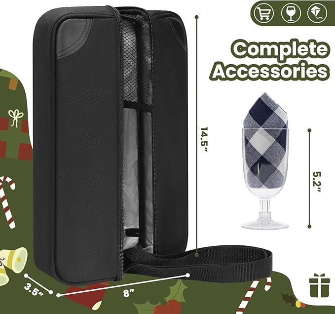 - Perfect Size for On-the-Go:With outer dimensions of 13.4 x 7.5 x 7.1 inches (Height 34cm, Width 7.5cm, Length 18cm), this compact wine tote fits easily in your car or storage space without taking up too much room.