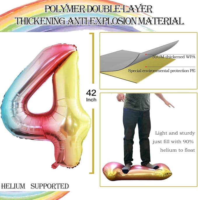 - Package Includes:Number 4 Balloons*3,42 inch,32 inch,16inch each,Straw*1
