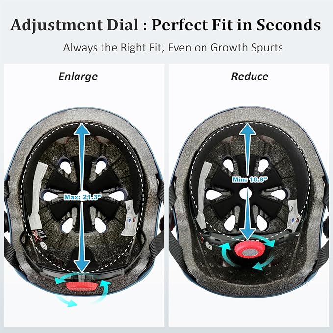 - 【Adjustable Kids Toddler Helmet Set 】- The helmet for kids has an adjustable knob in the back, can easily adjust to a perfect fit for kids, Helmet head circumference: 48-54 cm/18.9"-21.3", suitable for toddlers aged 3-5 and kids aged 5-8, one bike helmet set can be used for a few years