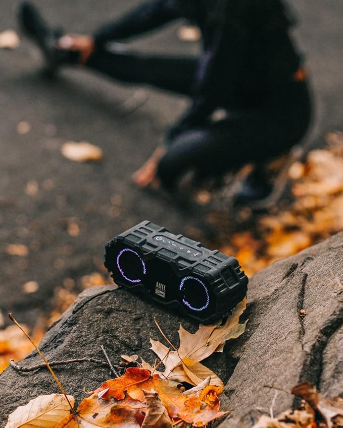 - Waterproof and Rugged: Thanks to the durable build coupled with the waterproof design, our portable party speaker with lights can be used in the rain, snow, and more. When dropped in water the speaker automatically floats to the top making it ideal for pool parties