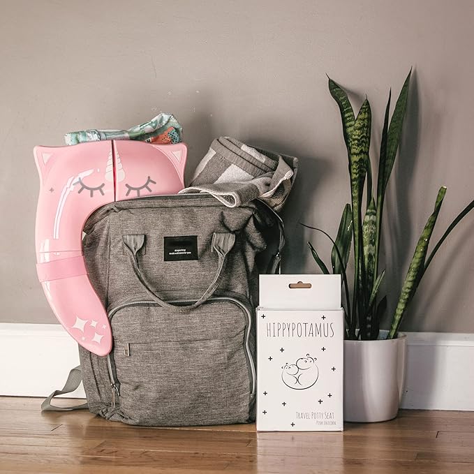 Hippypotamus Travel Potty Seat for Toddler - Folding Potty Training Seat - Portable Toilet Seat Cover for Baby & Kids (PINK Unicorn)