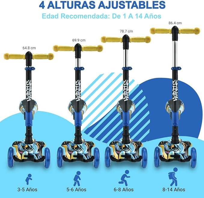 - ADJUSTABLE EASY-GRIP HANDLEBAR - The handle height offers 3 adjustments. The lean-to-steer technology lets leaning, instead of turning, to control the ride, for better balance and coordination.