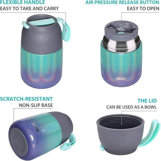- 【100% Leak-Proof】Airtight, easy to open and generous capacity. Take this Insulated food jar, your storage jars won’t leak in your lunch bag anymore!