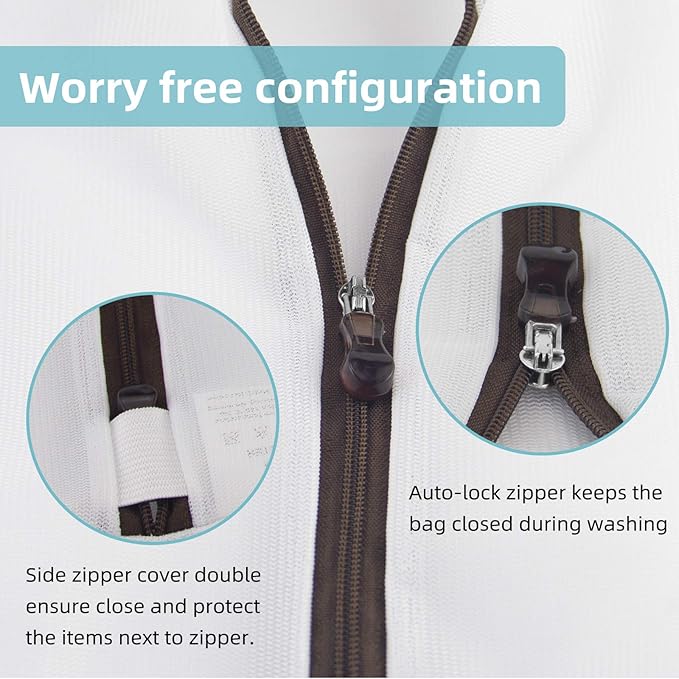 - Our upgrade anti-rust zipper with auto lock and side zipper protection band will prevent the bag from opening during washing and drying cycle. You’ll have a new quiet and a snag-free laundry experience