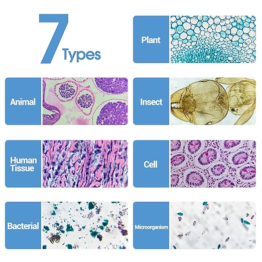 60 Microscope Slides with Specimens for Kids, Prepared Microscope Slides for Kids Microbiology, Prepared Microscope Slides for Adults