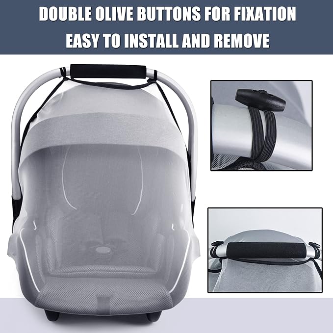 - EASY AND QUICK TO INSTALL: Unique design in the market-double olive designs for fixation for 1 time intalling for lating use. The baby insect netting universally fits most baby car seats and can be attached very quickly thanks to the elastic band.