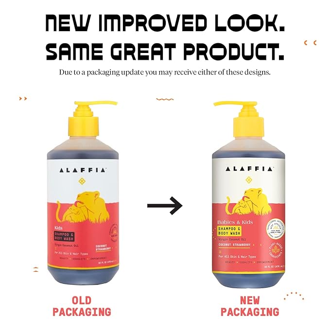 Alaffia Babies and Kids Shampoo and Body Wash, Gentle and Calming Support for Soft Hair and Skin with Shea Butter, Neem, and Coconut Oil, Fair Trade, Coconut Strawberry, 2 Pack – 16 Fl Oz Ea