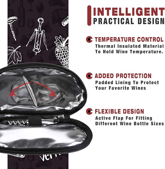 - Protection and thermal insulated - Thick padded lining with thermal insulated material to help store your wine from light and avoid fluctuating temperatures caused by external weather or condition. Internal collapsibale and padded divider to protect wine bottles from collision during transportation.External pocket to store additional belongs.