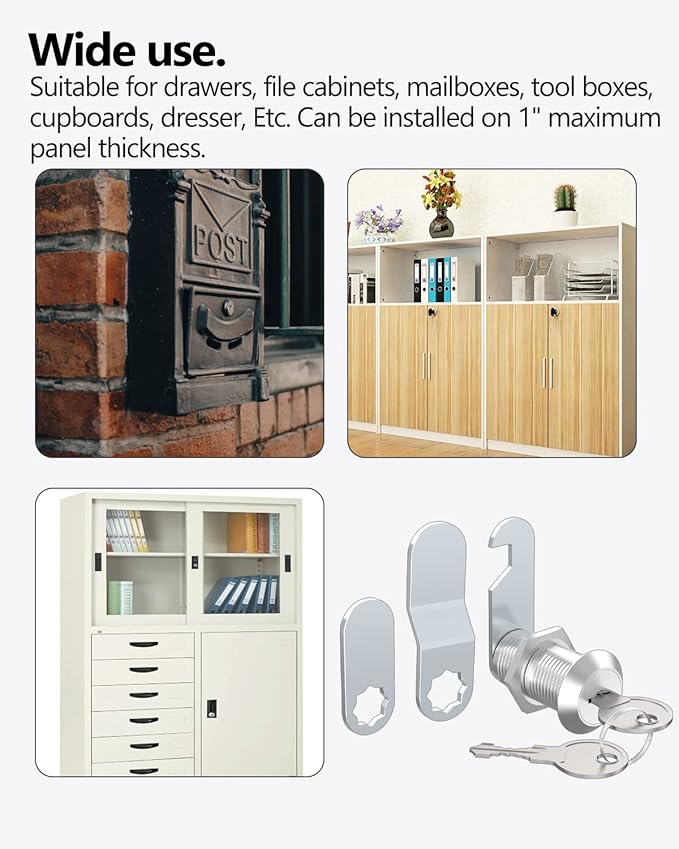 - Secure Cabinet Doors and Drawers Locks - This cabinet doors lock suitable for drawers, file cabinets, mailboxes, tool boxes, cupboards, dresser, it is a great way to secure cabinet doors and drawers.