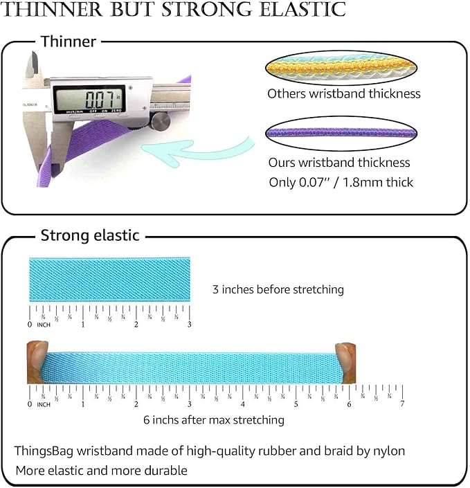 - 👍 LIGHTER and THINNER : ThingsBag Airtag Wristband is thinner and lighter than others. Its weighted only 0.29 oz/8g, and the band strap is only 0.07 inches thick.