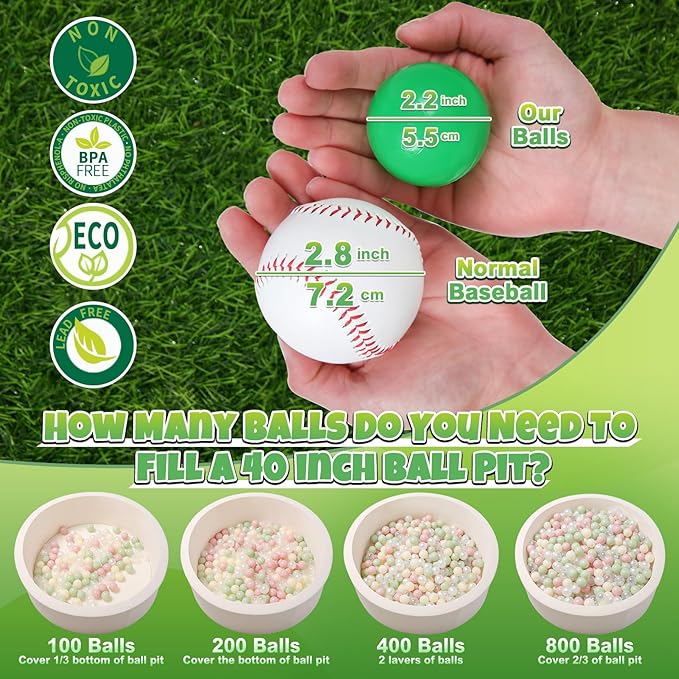- FULL OF FUN - Bright colors will attract your children and keep them entertained for hours. Grasping, throwing, even shooting a basket in the pool. You can also choose match the color to your playroom decor.