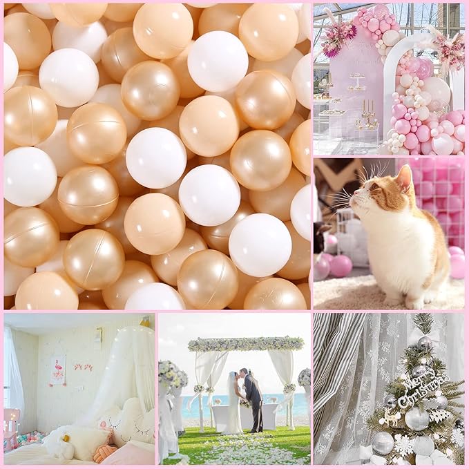 - PACKING - 100 pcs pack for home use. Great for filling any play tent, playpen, kiddie pool, baby playhouse, play yard, ball pit, and bounce house. Great photo prop for dogs, cats, pets as well. Can use it at parties, backyard, parks, playgrounds, day care, school, carnivals.