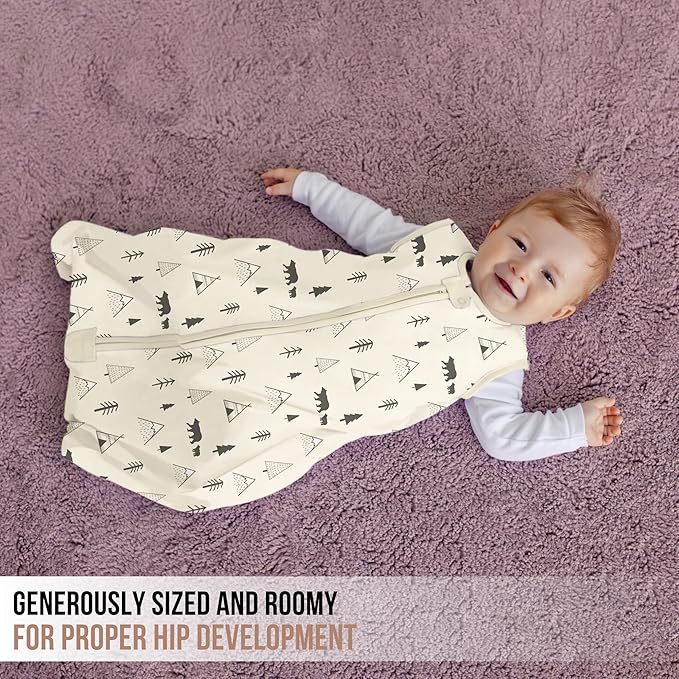 - 【BABY FRIENDLY, PROVIDES SAFE & SECURE SLUMBER】— Rest easy while your child is sleeping soundly without any loose blankets that could tangle or twist. Our baby sleep sack 6-12 months provide your child a safe & comfortable sleeping experience. The safety tab guarding your baby's tender neck & chin, promotes a consistently safe & cozy fit. Our sleep bag for baby has a bottom zipper cover that deters your baby's hands from unzipping the blanket, ensuring a safe & uninterrupted slumber.