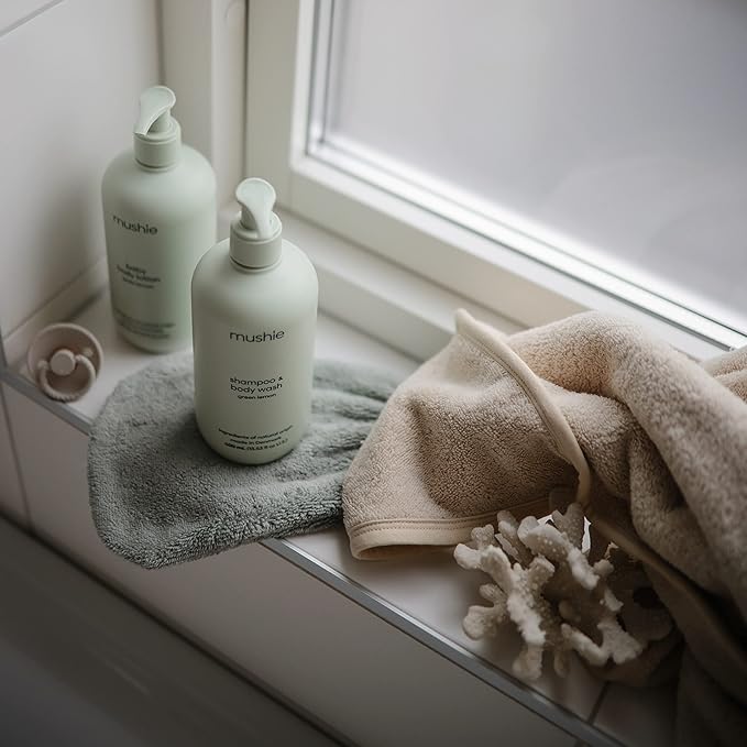 mushie Baby Bath Mitt | Organic Cotton | Pack of 2 (Sea Mist)