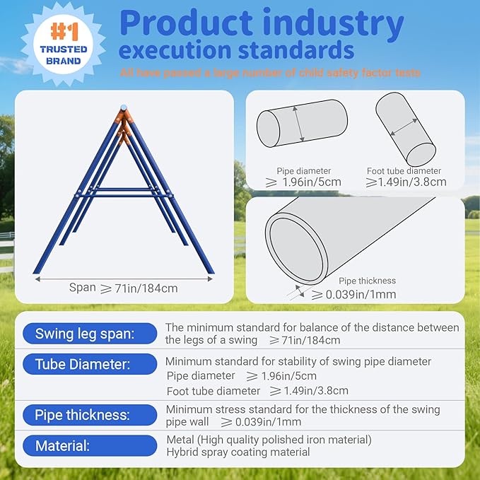 - MILITARY-GRADE SAFETY ENGINEERED: Exceeds ASTM F1148 standards with triple protection: Reinforced joints with cushioned lock-nuts prevents pinching injuries, 1mm-thick high-polish iron pipes 1.96" main tube/1.49" leg, tested for 500lbs, 71in ultra-wide leg span ensuring zero tip-over. Anchored by 6 spiral ground stakes
