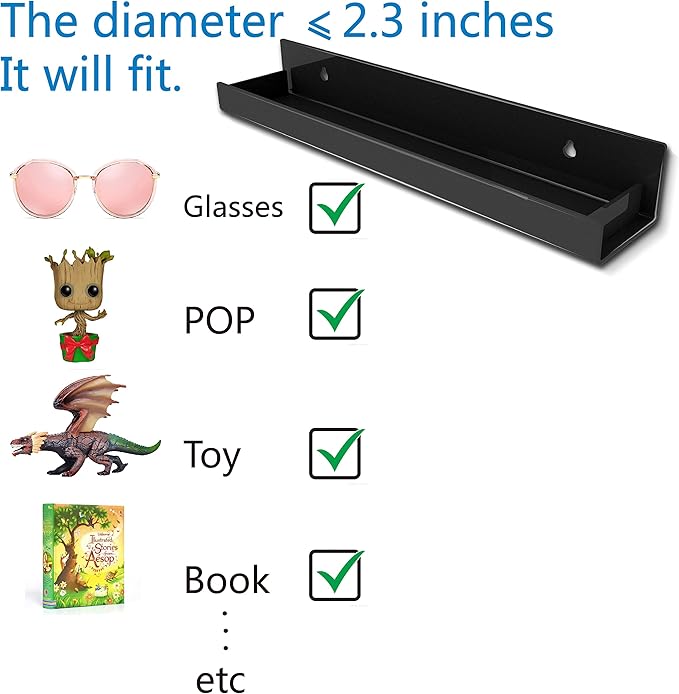 - Size&Packed: Depth is 2.3″, overall size 15″ x 2″ x 2.3″, total 4 packs.RORKIM has individually wrapped all clear wall shelves in protective film to ensure our clear acrylic racks are scratch-free.