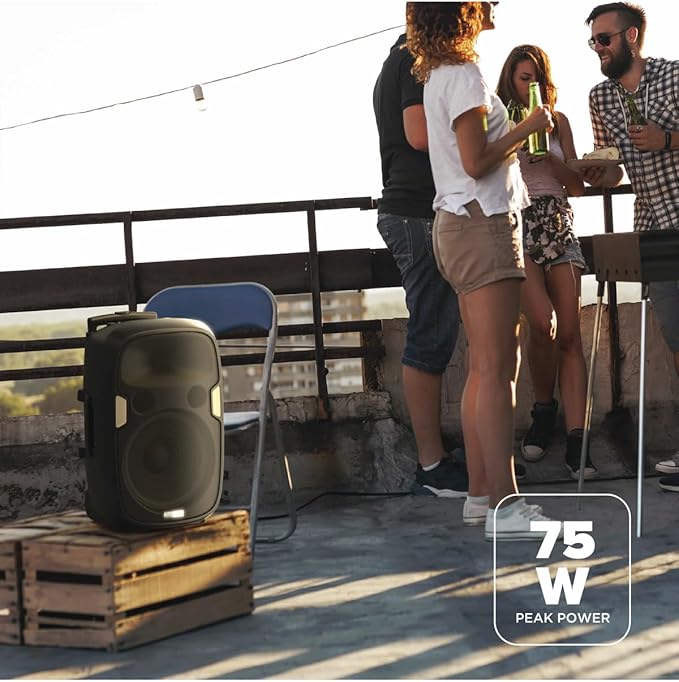 Altec Lansing SoundRover 75 Wireless Speaker 75W Bluetooth Speaker with a Long Lasting 10 Hour Battery, 50 Foot Range, Multi LED Party Modes, True Wireless Pairing, Bonus Microphone