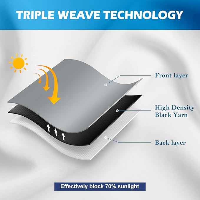 - Grommet Construction, Good To Go: Thread trimmed and wrinkle-free, ring (1.6-inch inner diameter) fits easily with standard curtain rods. All sets for you to put them up right away. Triple weave blackout fabric, room darkening curtains, protect your furniture, floors.