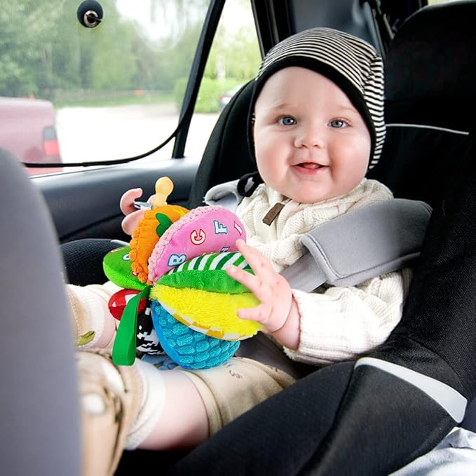 - 【Multi-scenario Sensory Plays for Growth】Play that explores textures and engages with sounds is a great way to support your child's sensory processing. This baby toy for 6-12 months is both a colorful fabric ball and a texture toy, a crinkle toy and a rattle toy.It is an amazing sensory toy ball, perfect for toss, catch, tummy time, crawling and other parent-child interactive games.