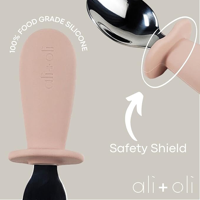 - ROUNDED SMOOTH EDGES: ensures safety, constructed of high-quality 316 stainless steel and food grade silicone handles are BPA, PVC, phthalate free like all Ali+Oli Products! These toddler utensils seamlessly help your little one transition to adult silverware with ease. Reusable easy grab fork and spoon for baby toddlers