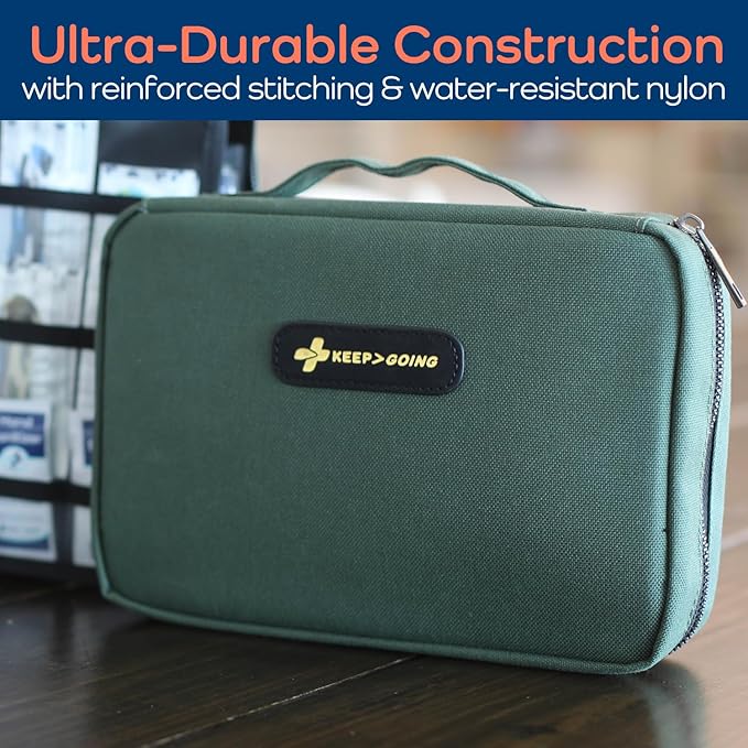 KeepGoing Large Home First Aid Kit for Kids – 270 Pc. for Car, Home, Dorm, & Boat with Latex-Free Bandages – 10 x 7 x 3.5 in. Travel First Aid Kit (Hunter Green)