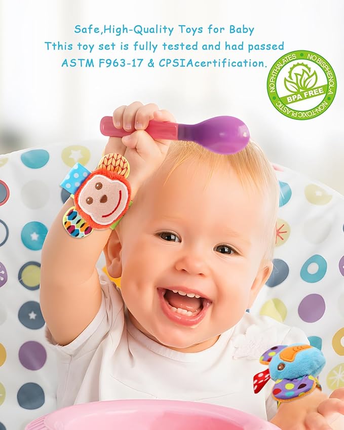 - BABY PARTNER -- Baby Rattles set was suitable for 0 month up babies boys or girls. The toys always keeps in hand, baby will not lose them or throw them on the ground. Best toys for babies when they're in stroller/infant Car Seat/mamaroo/bed/baby chair/Baby Carrier alone.