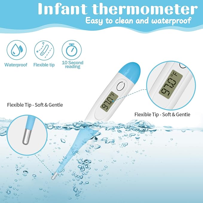 - 【30 in 1 Baby Healthcare & Grooming Kit】Our baby grooming kit includes storage case, electric nail trimmer (6 grinding heads & 1 metal nail files), 5 baby nail file, baby nail scissors, round-tip scissors, glowing earwax scoop, digital thermometer, baby tweezers, dropper, 5 alcohol prep pads, baby hair brush and comb, silicone toothbrush. This baby care kit fully meets your newborn baby daily cleaning care needs.
