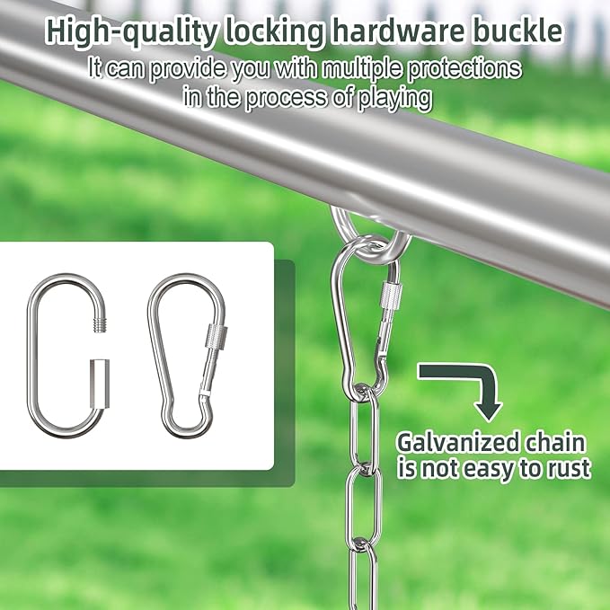 - Rustproof chain: Each galvanized chain is 66 inches long. 28 inches of the chain are covered with thermoplastic coating to prevent corrosion and rust. This completely eliminates any damage that may be caused by the chain. The thermoplastic coating is made of something good for surroundings, which is soft and comfortable to the touch and provide extra protection for children's fingers.