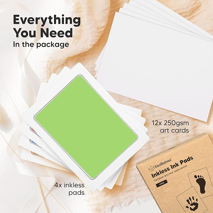 - 12 x 250GSM Art Cards - Your little one is perfect; so are their hand and footprint. Use the additional art cards to stamp multiple hand, foot or paw print. Choose the best artwork for your desired displays. Refer to our step-by-step instruction manual on how you can achieve the best results.