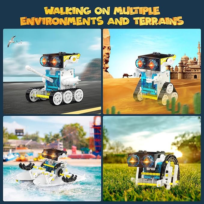 - 2 Power Source Modes-Wesfuner solar robot toys design 2 kinds of power source modes, solar panel and battery on robot head. Teach kids about problem-solving skills and creativity, educational and practical benefits, instilling knowledge, skills, and values that contribute to a greener and more sustainable future. If no sunlight, install a AAA battery (not included) inside the robot head and play indoors