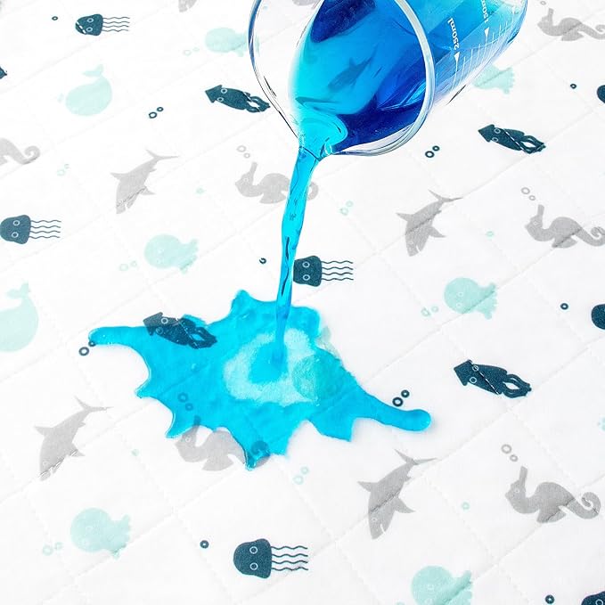 - Machine Washable: Machine washable on gentle cycle. Tumble dry on low heat or line dry. SPRINGSPIRIT’s waterproof crib mattress protector portable features blue ocean inspired by vigorous and adorable pattern, which brings friendship with nature.