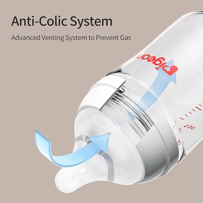Pigeon Baby Bottle Newborn Feeding Gift Set, Anti-Colic, Wide Neck Bottle with Latch-On Line Nipple (4 PP Feeding Bottles with Nipples+ 4 Nipples + 1 Baby Bottle Brush)