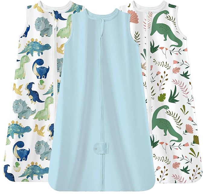TotAha Cute Dinos Sleep Sack 6-12 Months 3 Pack, Buttery Soft Swaddle Transition Wearable Blanket Baby Sleeping Bag, 0.5 TOG