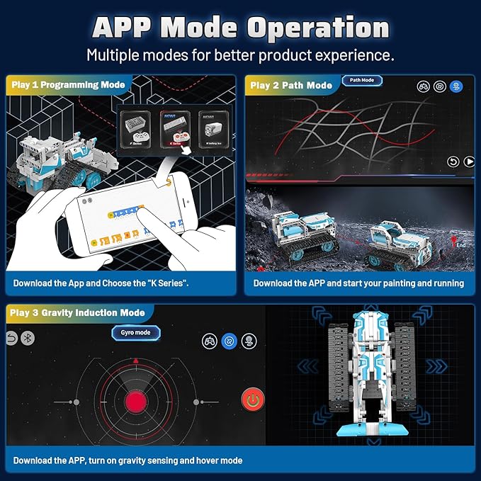 - Remote and App Control: Offering both remote control and app-based control with multiple movement options and 360° rotation stunts adds an extra layer of engagement and excitement to play. The inclusion of app control introduces programming concepts, helping children learn and develop valuable skills.(Remote control need 2AAA batteries: Don’t included).