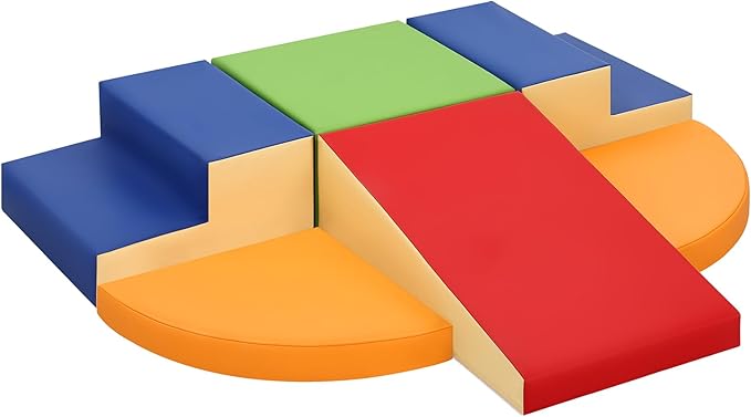 - 6-Piece Set: Baby climbing blocks consists of 2 blue stairs, 2 orange half-moons, 1 green square and 1 red slide. This soft play equipment stimulates your child's imagination to create endless combinations of structures, allowing them to enjoy the fun of the toy as they climb up and down, stacking and swapping four different shapes. Our climbing sets have a unique patented design that your child is sure to love