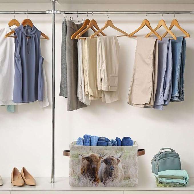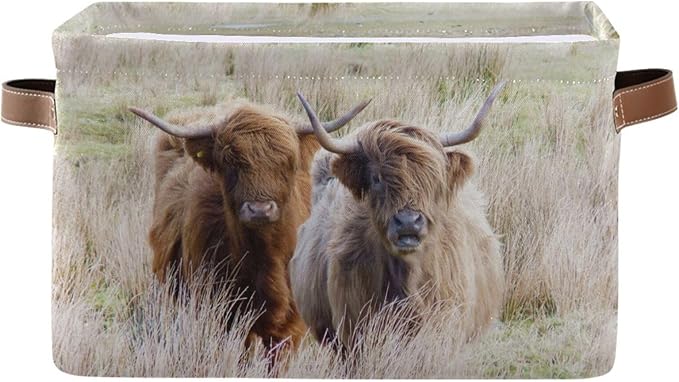 Highland Cows Storage Basket Cube Storage Bins Organizer Bag Collapsible Closet Shelf Baskets with handle for Baby Cloth Pet Toy Book 14.2×10.2×8.3 IN
