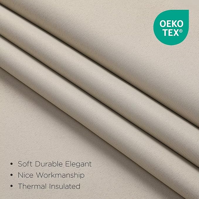 Joydeco 84 Inch Blackout Curtains for Bedroom, Thermal Insulated Black Out Curtains 2 Panels Set, Room Darkening Drapes for Living Room Window Rod Pocket Back Tab (W37 x L84 Inch, Light Beige)