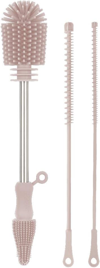 Haakaa Silicone Cleaning Brush Kit – Household Cleaning Brushes for Bottles and Crevices – Food-Grade Silicone: Dishwasher Safe (Kit-Blush)