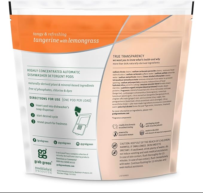 - Tangerine Lemongrass Dish Soap Pods - Each pre-measured dishwasher pod provides a bright burst of natural fragrance with our tangerine lemongrass plant-based formula