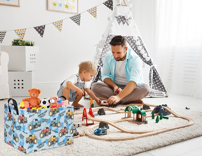 HIYAGON Rectangular Monster Truck Basket for Kids Baby Basket for Boys and Girls Cute Toy Storage Organizer Bin Box Truck Room Decor(Monster Truck)