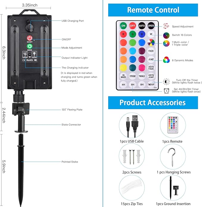 - Special Feature : ★49FT ★150 LEDs ★Solar Powered ★USB Rechargeable ★16 Vibrant Colors ★2 multi-color steady on ★Remote Controlled ★IP68 Waterproof ★ 8 Light Modes ★ Timer ★Twinkling ★Speed Adjustable ★ Portable ★49FT ★150 LEDs ★Solar Powered ★USB Rechargeable ★16 Vibrant Colors ★2 multi-color steady on ★Remote Controll… See more