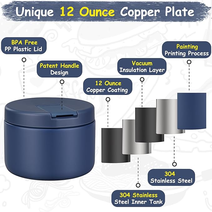 - Upgrade to 12 OZ Capacity: Bigger capacity can hold more food for children. The stainless steel soup thermal bottle is a double wall, with a vacuum in the middle, has good insulation performance, with a wide mouth design that is easier to clean.