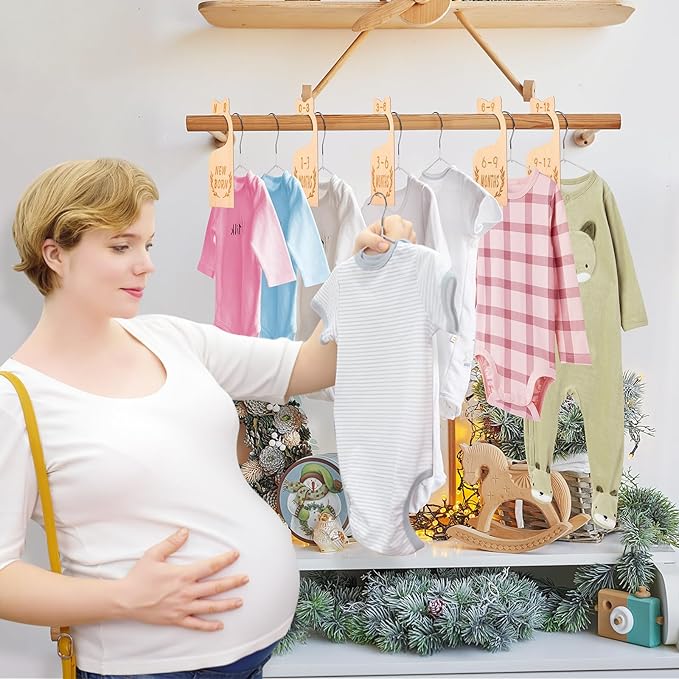 8Pcs Wooden Baby Closet Dividers for Baby Clothes Organizer, and 30Pcs Baby Hangers, Baby Closet Organizer Baby Clothes Dividers for New Mom Dad Parents, 0-24 Months, Large, SL0058
