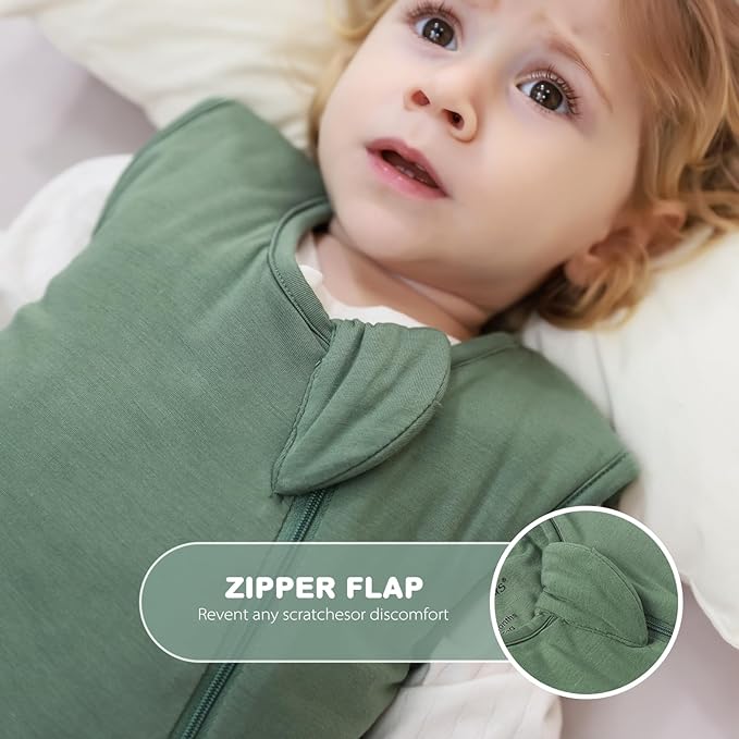 Mosebears Unisex Baby Sleep Sack 1.0 TOG, Supersoft Rayon Made from Bamboo Wearable Blanket with 2-Way Zipper (Dark Green,18-36 Months)