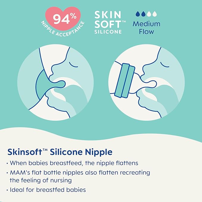 - 94% Nipple Acceptance: With a soft SkinSoft nipple, MAM baby bottles newborn are accepted by 94% of babies, making it easier to switch between breastfeeding and baby bottle feeding.