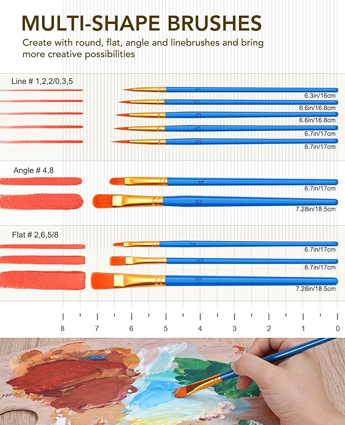 - WIDE APPLICATION : Dry fast, water-proof and fade-resistant, acrylic paint is suitable for most surfaces, so do not limit your creativity to one place, You can versatile in canvas, stone, wall, wood, glass, paper, cloth, scrap booking, ceramic, decorative wallpaper and so on. Just let your imagination run free and add an artistic touch to your life. Acrylic paint set are perfect for professional artists, kids, students, beginner and art lovers for painting and crafting.