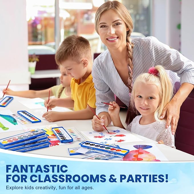 - Wonderful Bulk for Art Activities - Whether you use it to create colorful paintings or paint on crafts made of different materials such as stone, glass, ceramics, clothing, etc., these watercolor paints are versatile tools. Watercolor paint set is perfect for use at classroom, home, painting parties, and more art activities. Not only is it a great choice for school supplies, it's also a perfect gift for kids, teens, adults, and all age!