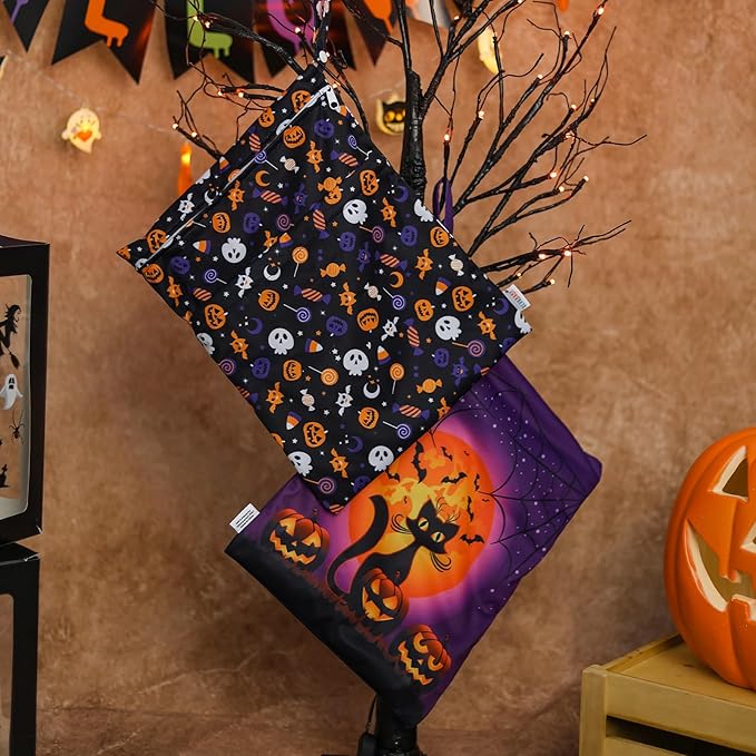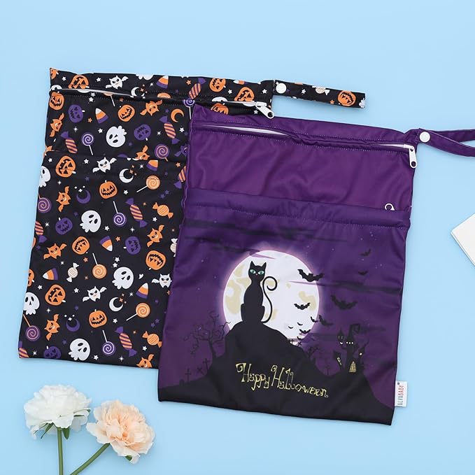 ALVABABY 2pcs Cloth Diaper Wet Dry Bags Waterproof Reusable with Two Zippered Pockets Travel Beach Pool Daycare Soiled Baby Items Yoga Gym Bag for Swimsuits or Wet Clothes 2LM07